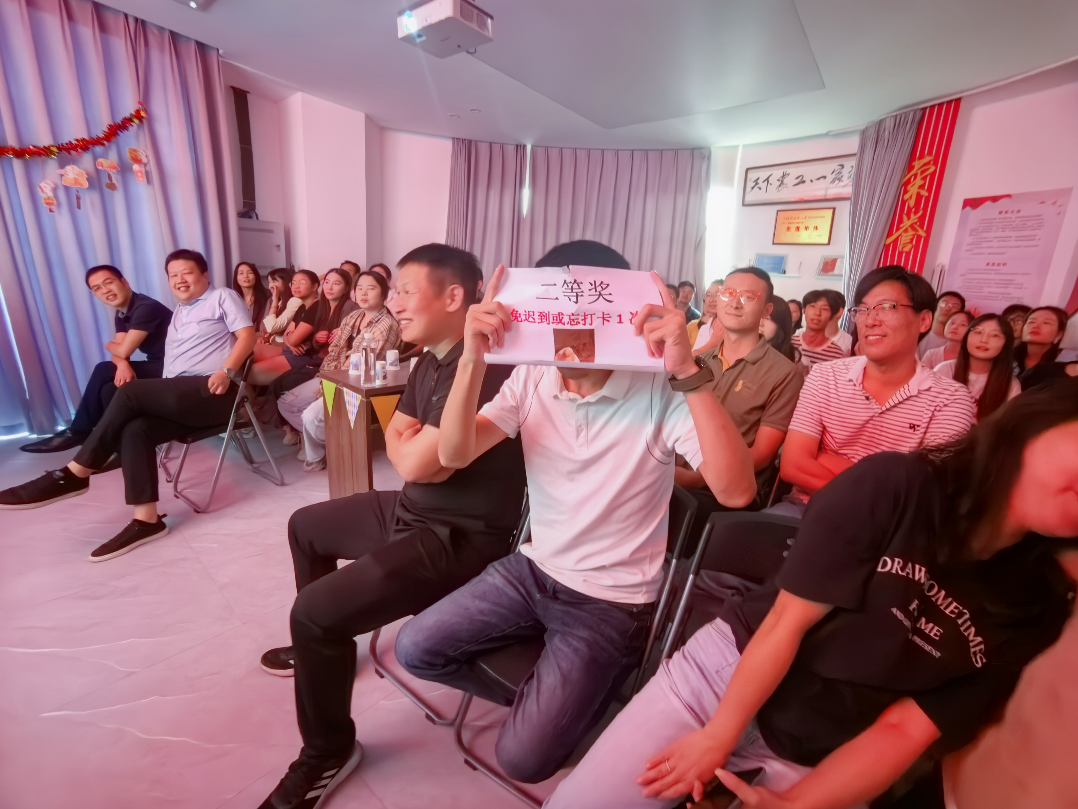 活动开始,由人力资源部小白和芳芳担任主持,分别为大家介绍博饼活动中游戏环节以及博饼规则。